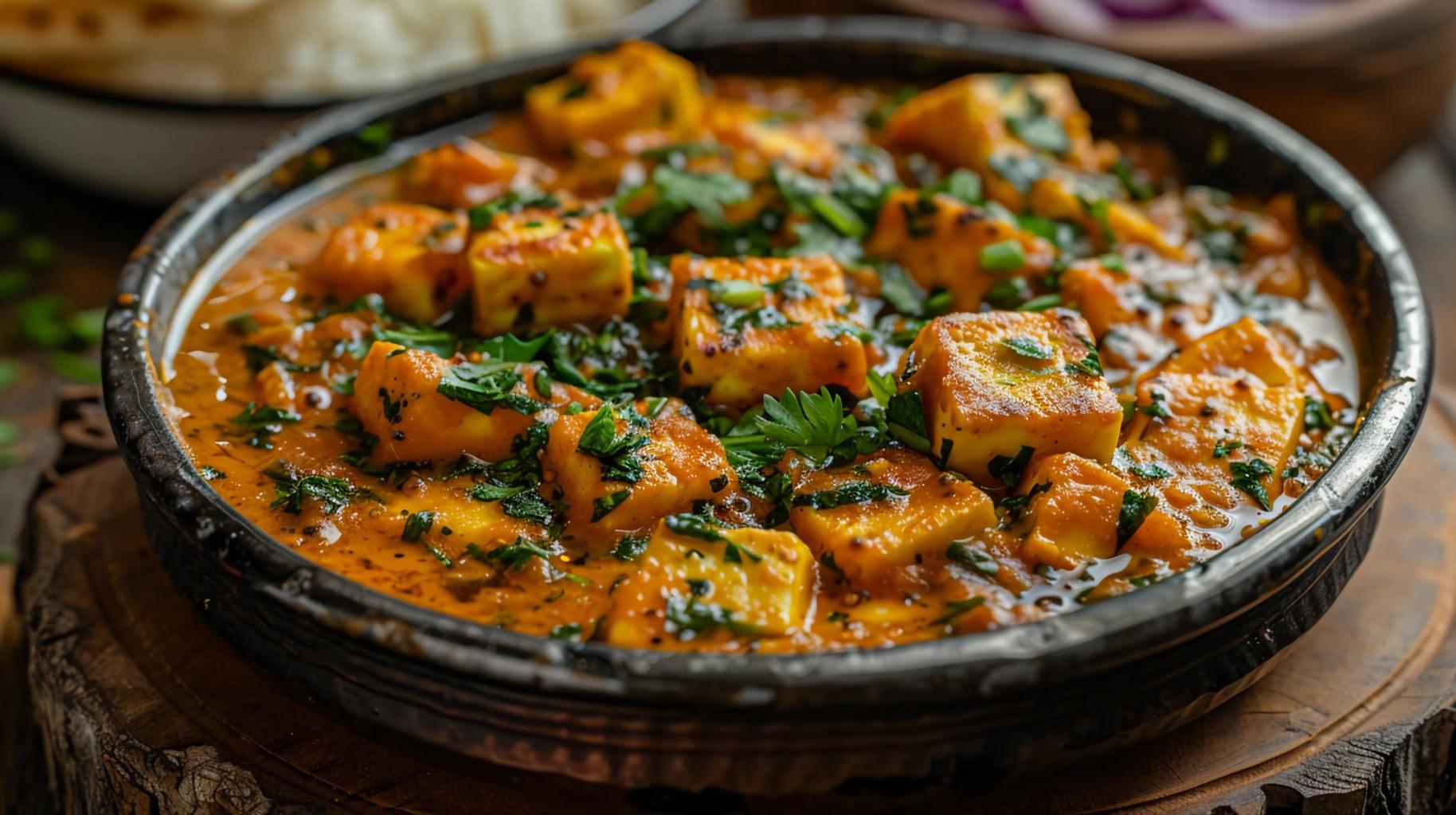 Spicy chicken cooked in traditional Indian gravy.